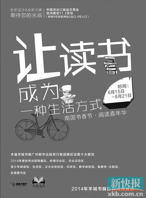 記者昨天從南國書香節(jié)組委會獲悉,書香節(jié)門票免費領(lǐng)取點標準版發(fā)布。另外,臺灣著名作家兼導(dǎo)演、《那些年,我們追過的女孩》的作者九把刀將在2014南國書香節(jié)與廣大讀者見面,“九把刀《純愛三部曲》讀者見面會”活動原定8月17日在羊城書展活動文化區(qū)舉行,現(xiàn)改在8月17日8號會議室舉行,具體時段為10點到12點。??