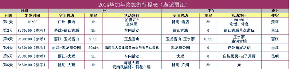 云南,我們來(lái)了——畢加2014秋季旅行行程安排