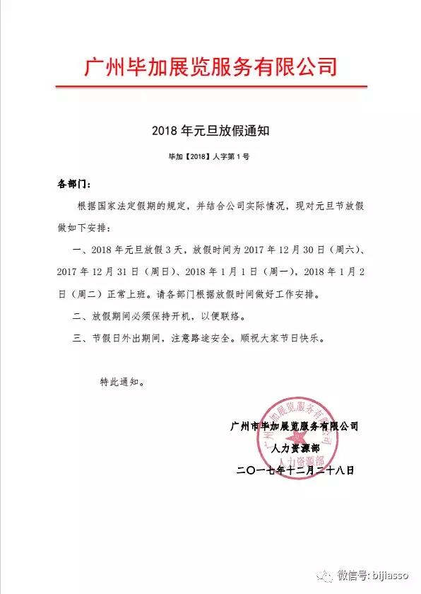 元旦放假通知